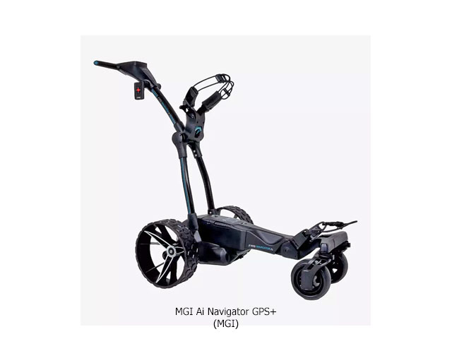 Integrating GPS with an electric caddy is an idea long overdue and MGI has done it with the Ai Navigator GPS+. The GPS handle display is large enough to be read easily and bright enough for strong sunlight.