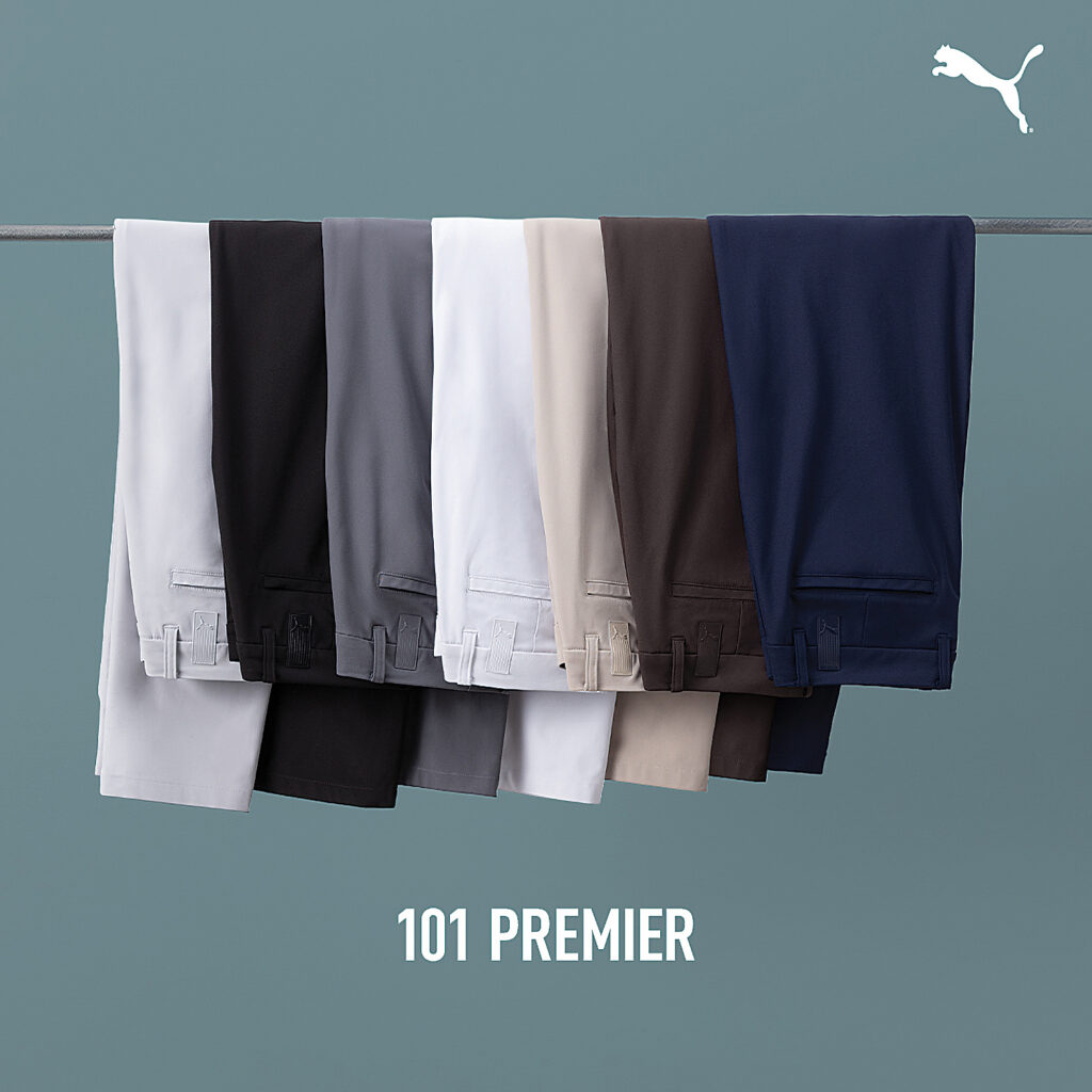 Price at $108 for the pants and $88 for the shorts the 101 Premier collection has something for every man who wants to look great on and off the course. Each is made from Puma’s LUXKNIT fabric that’s 5-% recycled materials. They are 4-way stretch for easy wearing with a stretch waistband and silicone shirt gripper. Breathable naturally with nice-to-have features like a shank button closure and coin pocket. 101 Bottoms – PUMA Golf