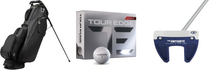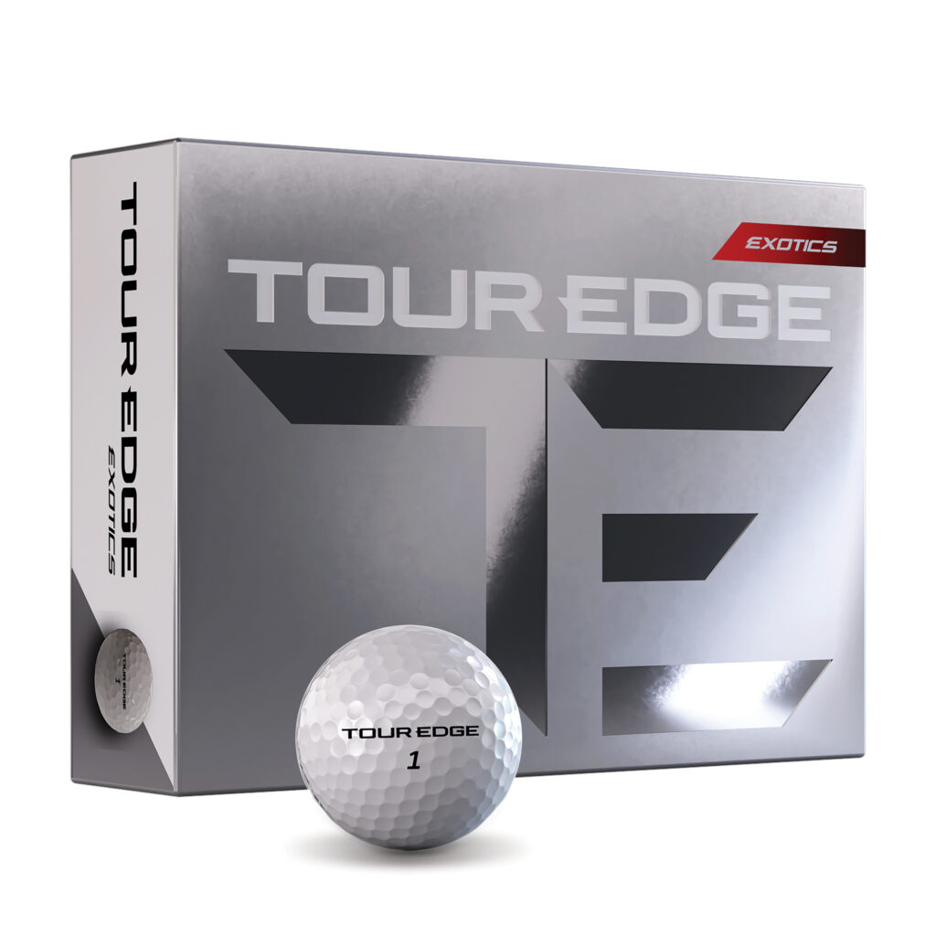 Tour Edge, a company known for golfer-friendly priced lines of clubs and more recently for the premium category Exotics woods and irons, has leapt into the hyper-competitive golf ball market with the high-performance Exotics golf ball at $39.99 dozen. This three-piece premium category ball has a 318-dimple urethane cover and an ionomer mantle, a combination giving distance off the driver and scoring shot control. Exotics Golf Balls – Tour Edge